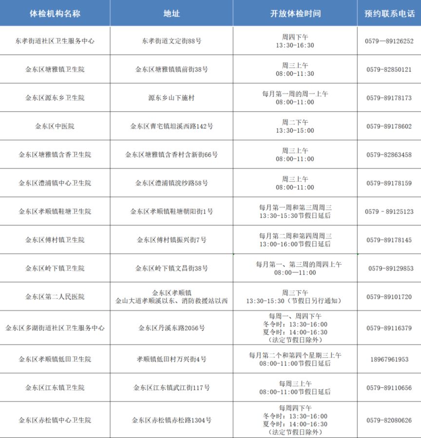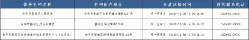 2. 金华市公共卫生服务中心 地址:金华市婺城区双龙南街518号 电话:0579-82371234