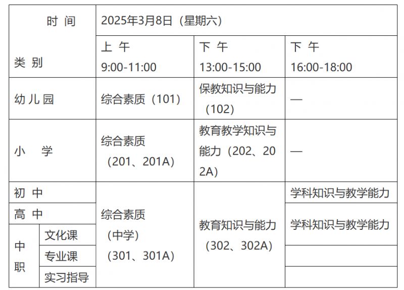 本次笔试考试日期为2025年3月8日,各科目考试时间均为120分钟、采用纸笔考试方式。