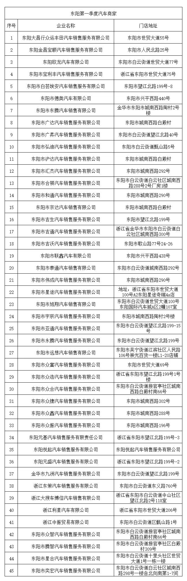 在东阳市行政区域内购买新车(不包括二手车)的消费者。
