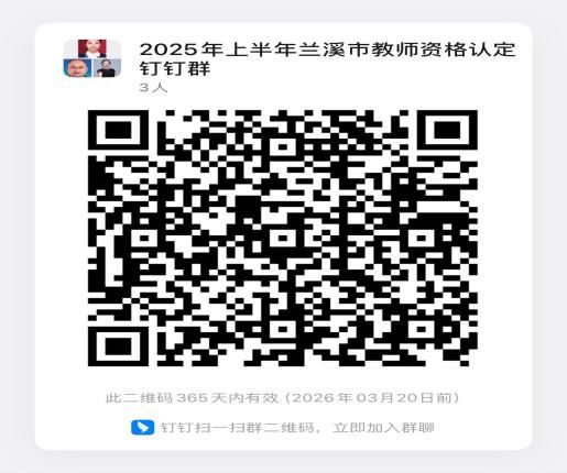 社会考生如有政策疑问,可向兰溪市教育局电话咨询:0579-88820207(周六、日暂停咨询服务),并请用钉钉扫码加入“2025年上半年兰溪市教师资格认定钉钉群”。