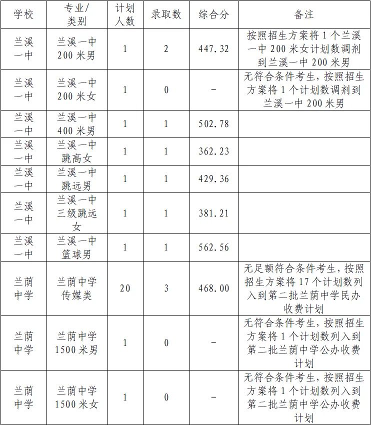 1.录取顺序:首先录取兰一中体育特长生,然后录取兰溪一中招生计划中25%的统招生(含体育特长生录取人数),最后录取兰溪一中招生计划数中75%的定向生。