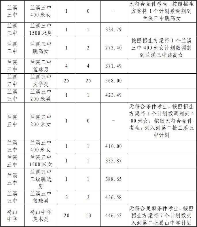 注:各校计划数中加上的数字为该校特长生因未录满而转到普通班的计划数。
