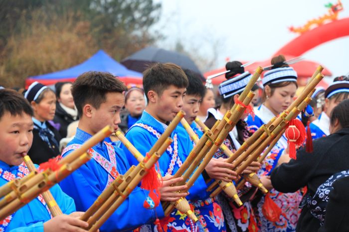 活动现场,一支吹芦笙、唢呐等乐器的队伍由远而来,整齐划一的动作配合着节奏感强烈的吹奏,让现场气氛迅速升温。身着绚丽多彩民族服饰的表演者早早入场,随着欢快激昂的民族音乐响起,大家围成一个圈,轻盈地迈开舞步,跳起了富有特色的民族舞蹈。 紧接着,三十余支表演队伍轮番登场,为大家带来原生态的民族歌舞,有的踏着芦笙的节奏翩然起舞,银饰叮当宛若星河流动;有的唱响悠扬的民族歌曲,天籁之音回荡山间;有的表演现代舞,观赏性极强……大多数表演都是由村民自发组织和排练的,风格各异,让人不禁被这热烈的气氛所吸引,现场变成了一片欢乐的海洋,围观群众纷纷拿出手机记录下精彩瞬间,不少人还跟着音乐的节奏拍手叫好。