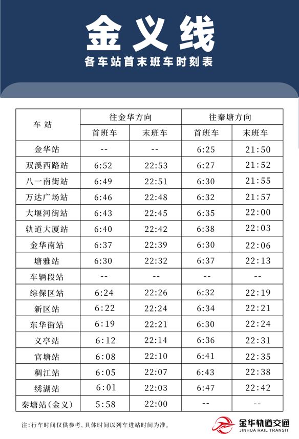 以下是2025年金华轻轨至义乌的最新时刻表,请注意,以下信息仅供参考,具体发车时间及站点可能会有变动,建议出行前通过官方渠道或轻轨APP查询最新信息。